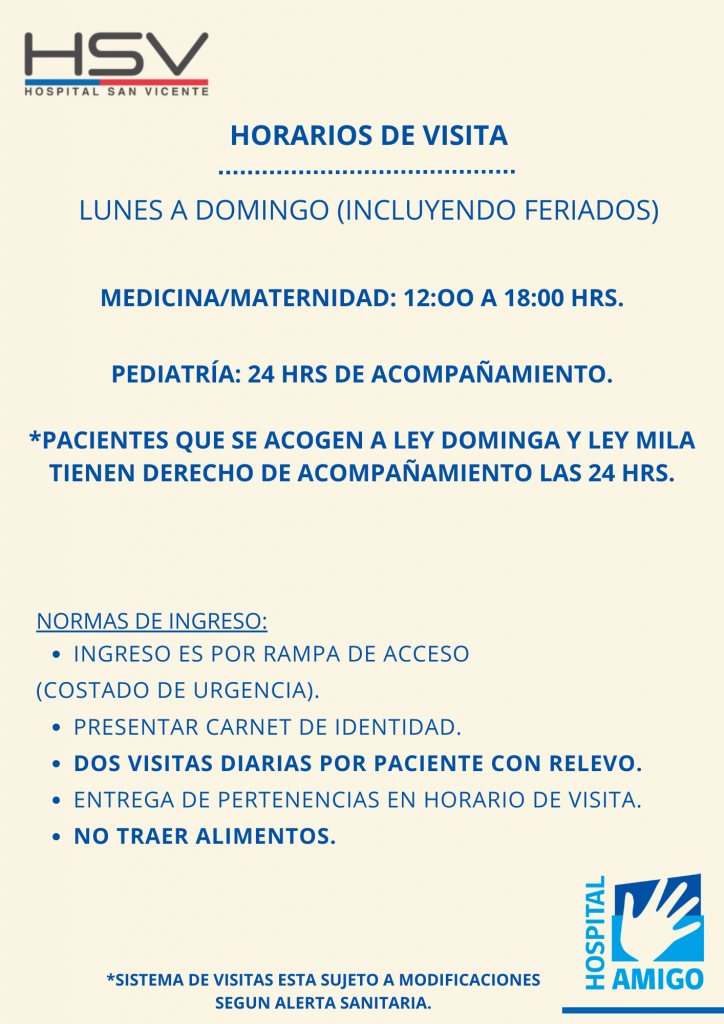 También les recordamos los horarios de visita en nuestras dependencias de hospitalizados. Para conocer más sobre estos horarios, les invitamos a leer la gráfica: